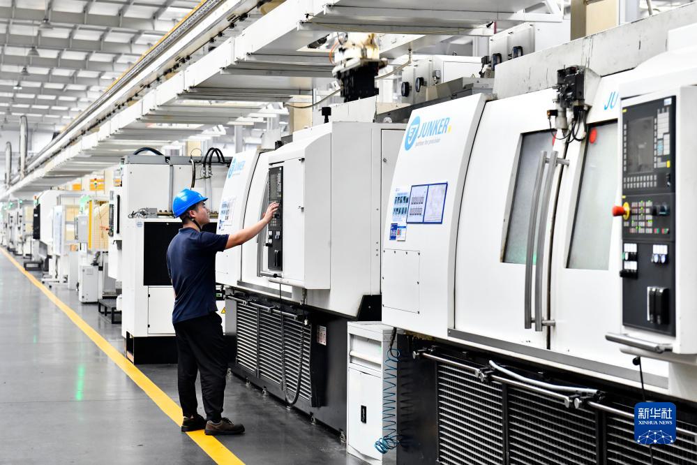 7月21日,在位於威海市文登區的天潤工業技術股份有限公司,工人在曲軸自動化生産線值守。