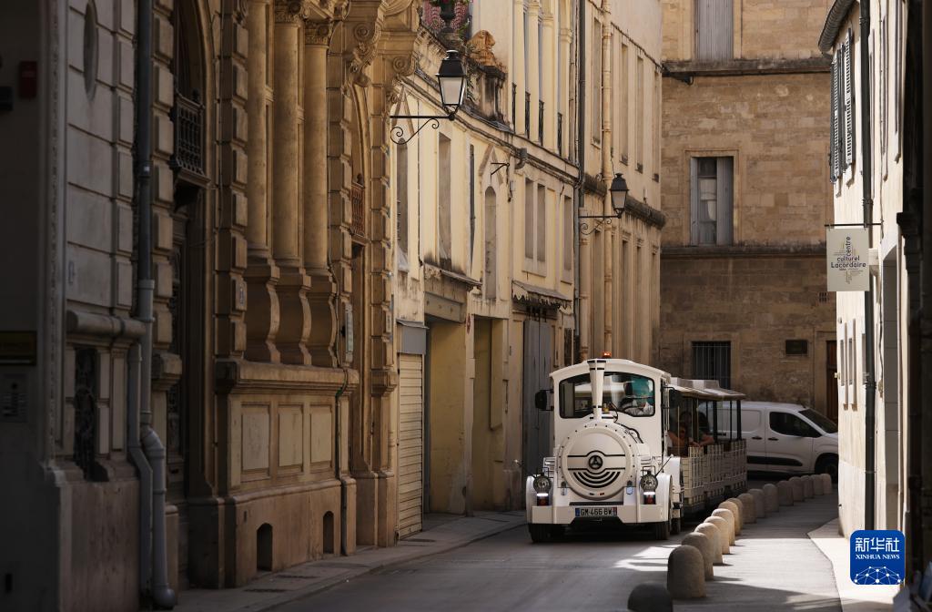 7月19日,旅游觀光車行駛在法國蒙彼利埃的街道上。