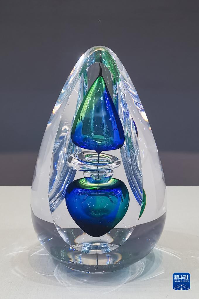 這是法國蒙彼利埃市贈送給成都市的玻璃藝術品(7月15日攝)。