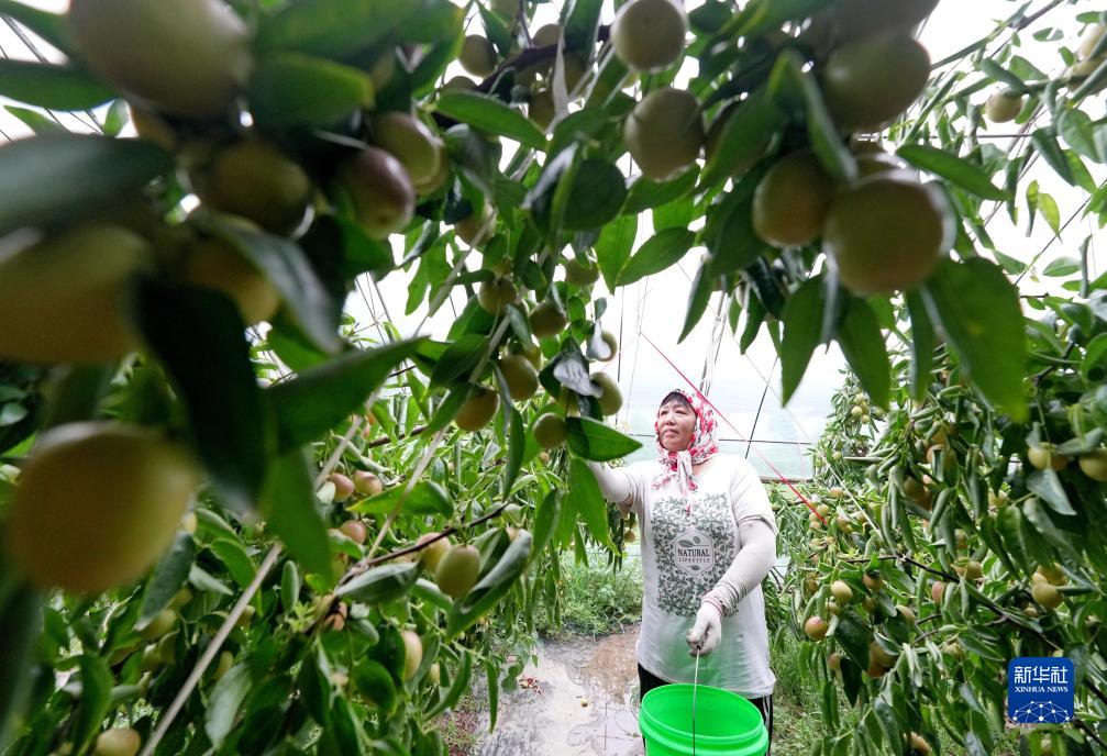 近日,河北省黃驊市的大棚冬棗開始進入成熟期,果農開始適時採摘,供應市場。