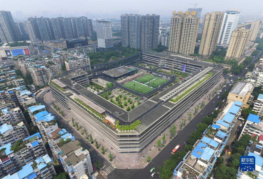 這是成都西村大院樓頂跑道及足球場(2016年5月28日攝,無人機照片)。