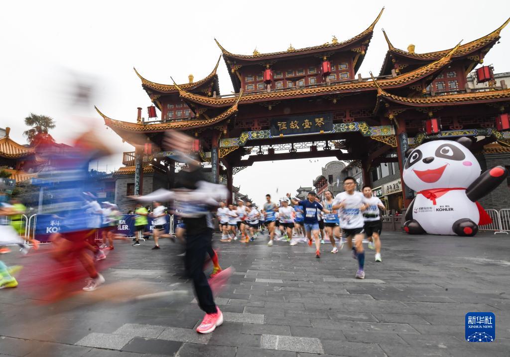 馬拉松愛好者在比賽中經過成都琴&路(2022年11月20日攝)。