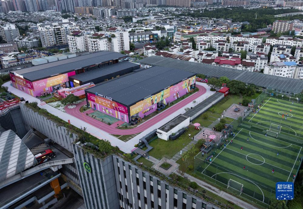 這是成都市金沙天空森林體育公園(7月20日攝)。金沙天空森林體育公園位於成都市金沙公交樞紐站停車場樓頂,佔地12000平方米,有籃球館、排球館、綜合訓練館、體適能訓練區、足球場和健身步道等。