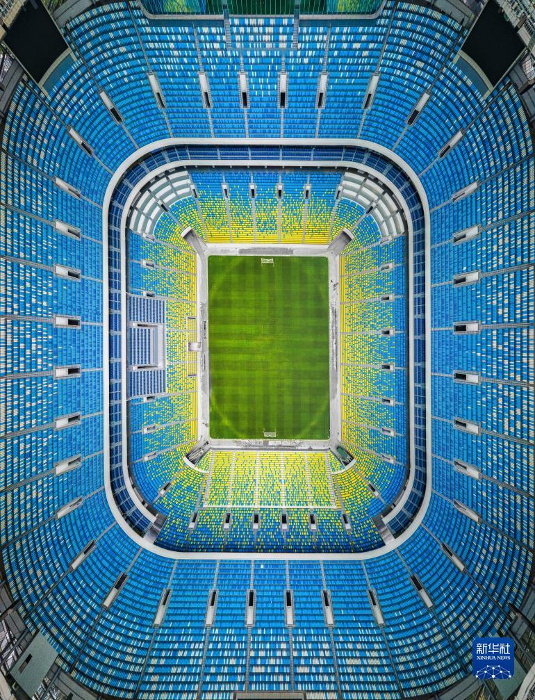 這是鳳凰山體育公園內的專業足球場(2021年9月1日攝,無人機照片)。