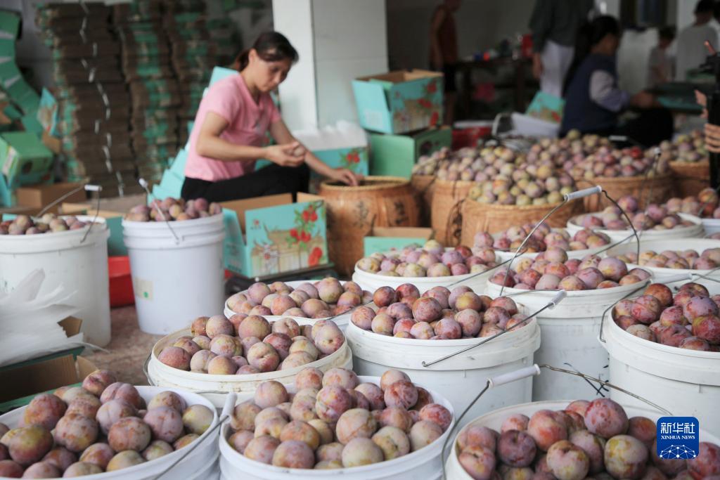 眼下,福建省龍岩市連城縣四堡鎮的2萬餘畝芙蓉李陸續成熟,當地村民搶抓農時採摘、包裝芙蓉李,供應各地市場。近年來,四堡鎮依託山地優勢,採取“農戶+合作社”的模式發展芙蓉李産業,助力農民增收。