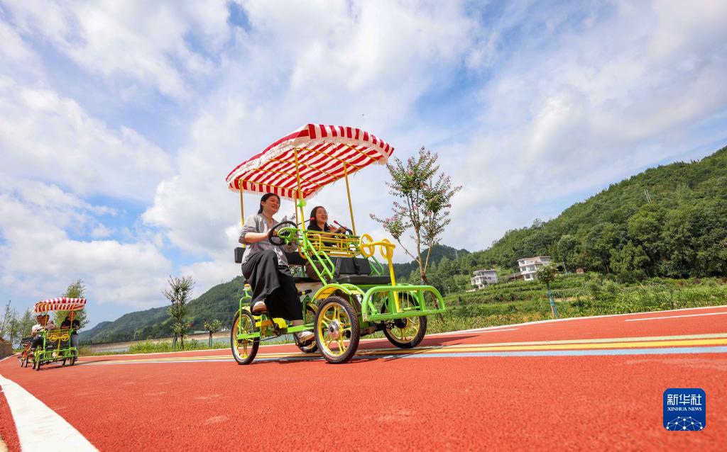 7月21日,游客在貴州省銅仁市印江土家族苗族自治縣雲上天池景區騎行。