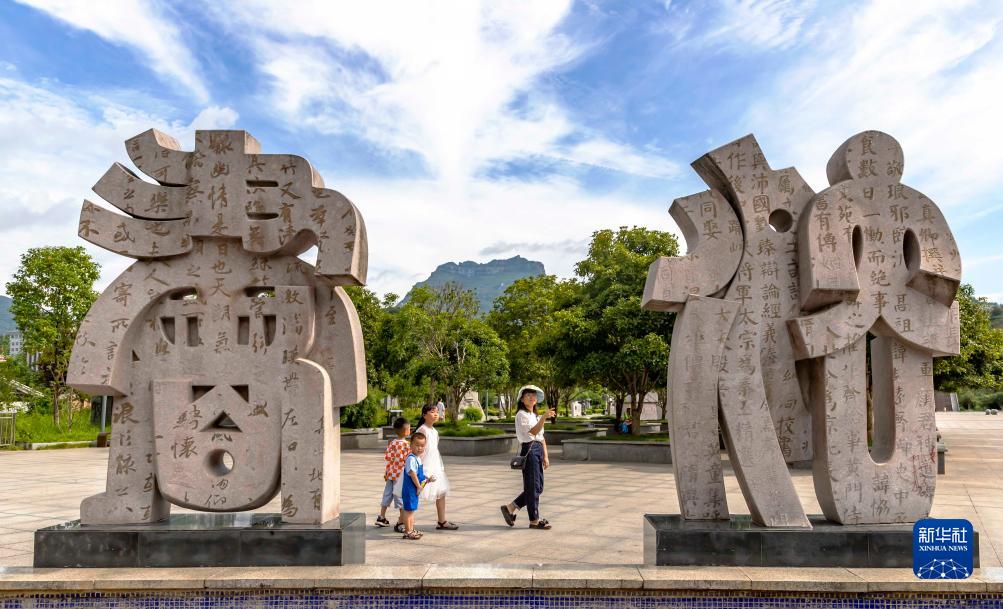 7月21日,游客在貴州省銅仁市印江土家族苗族自治縣書法廣場參觀游玩。