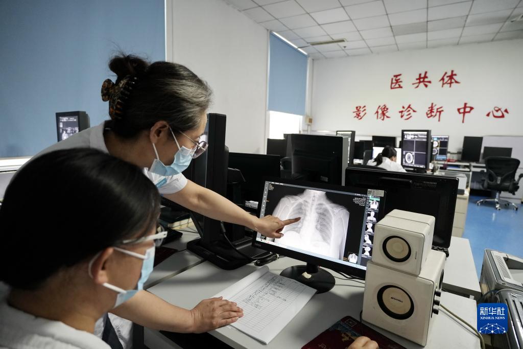 7月21日,河北省灤州市人民醫院的醫生在醫共體影像診療中心分析鄉鎮醫院上傳的患者影像圖片。