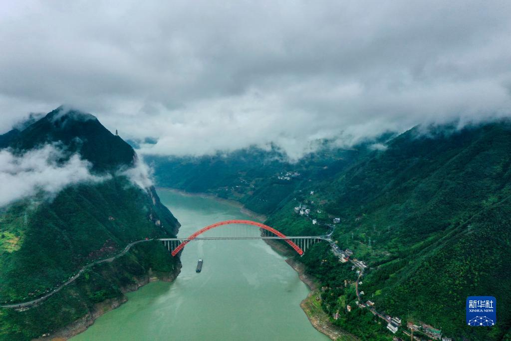 這是在重慶市巫山縣拍攝的雨後長江巫峽口景色(6月29日攝,無人機照片)。