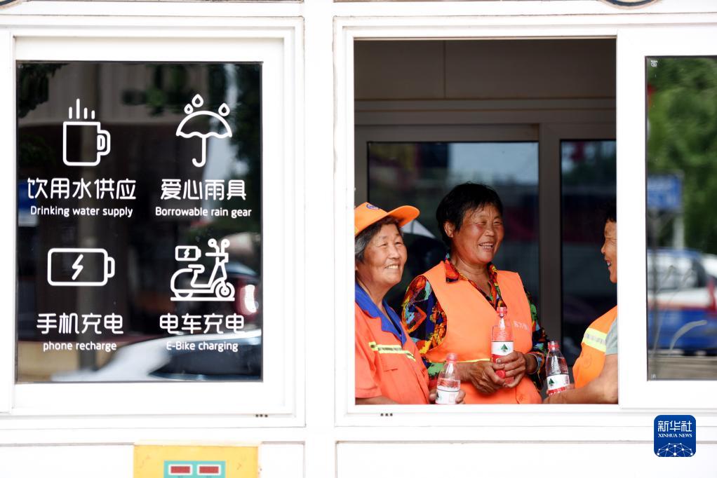 最近,山東省臨沂市郯城縣綜合執法局在城區和建築工地附近設立了多個“愛心驛站”。20多家愛心企業為驛站捐贈了雨傘、桌椅、西瓜、飲水機、充電器等物資。“愛心驛站”免費為環衛工人、外賣小哥、建築工人等戶外勞動者、新業態就業群體提供休息、納涼等服務。