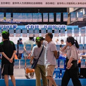 當日,浙江省金華市舉辦“人才夜市”高校畢業生專場,多家生物醫藥、機械製造、新能源企業為求職者提供工作崗位,吸引了許多高校畢業生前往諮詢應聘。