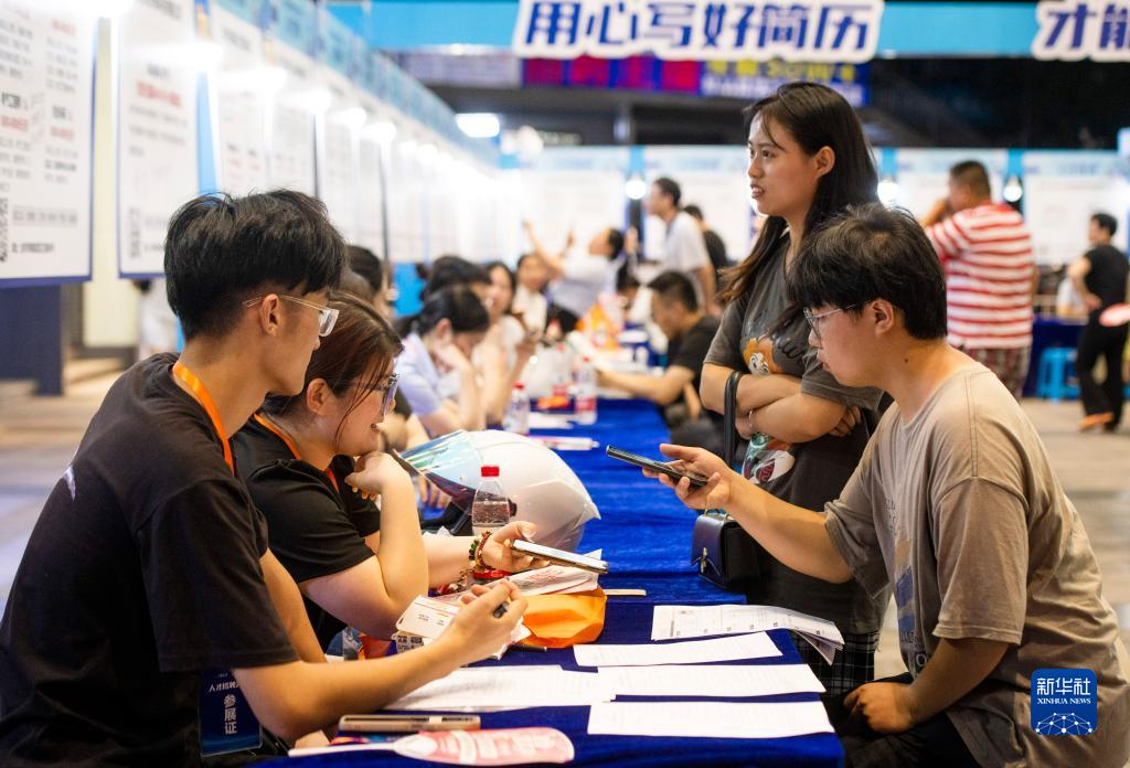 當日,浙江省金華市舉辦“人才夜市”高校畢業生專場,多家生物醫藥、機械製造、新能源企業為求職者提供工作崗位,吸引了許多高校畢業生前往諮詢應聘。