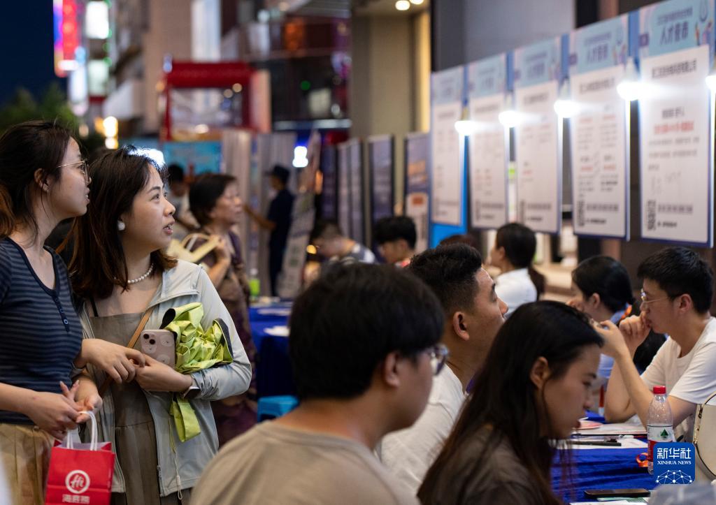 當日,浙江省金華市舉辦“人才夜市”高校畢業生專場,多家生物醫藥、機械製造、新能源企業為求職者提供工作崗位,吸引了許多高校畢業生前往諮詢應聘。