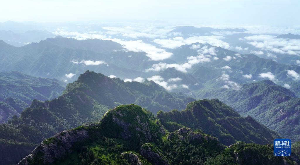 從陜西朱雀國家森林公園眺望秦嶺雲海(7月21日攝,無人機照片)。