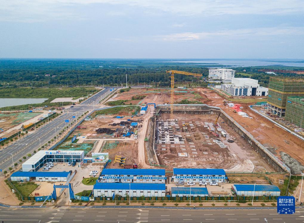 這是在海南文昌國際航天城拍攝的建設中的衛星研發中心項目(無人機照片,7月16日攝)。