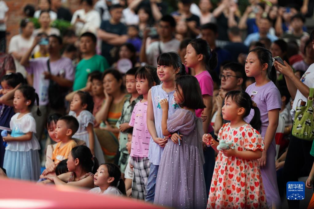 7月21日,市民在安徽省合肥市瑤海區車橋新界文創街區觀看馬戲表演。