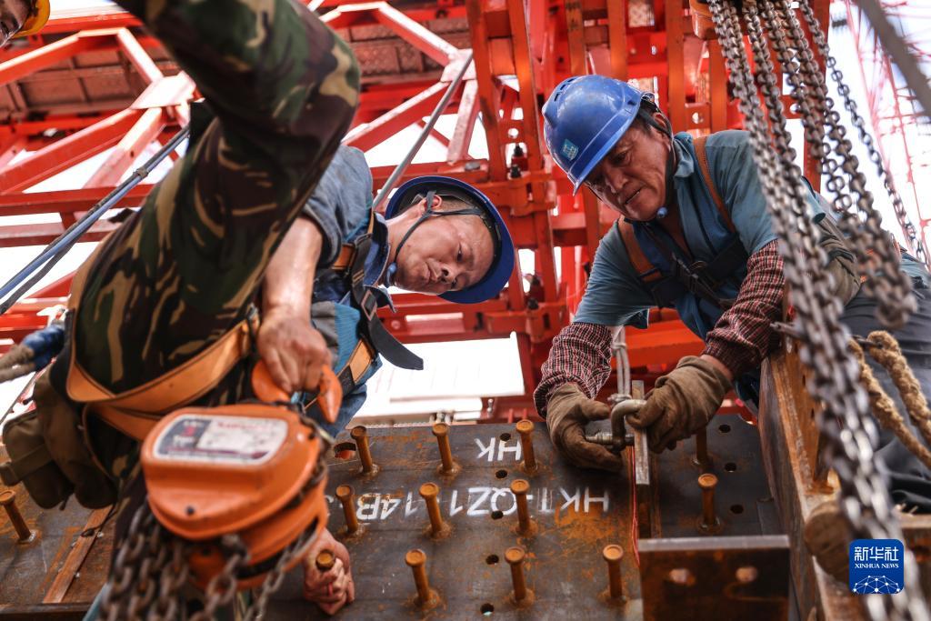 該項目運用了“空中造樓機”,即為超高樓施工提供便利作業環境的輕量化頂模集成平台,助力項目實現高效立體化施工。在“空中造樓機”的加持下,項目建設正有序推進,預計2025年底項目主體結構封頂、2026年底投入運營。