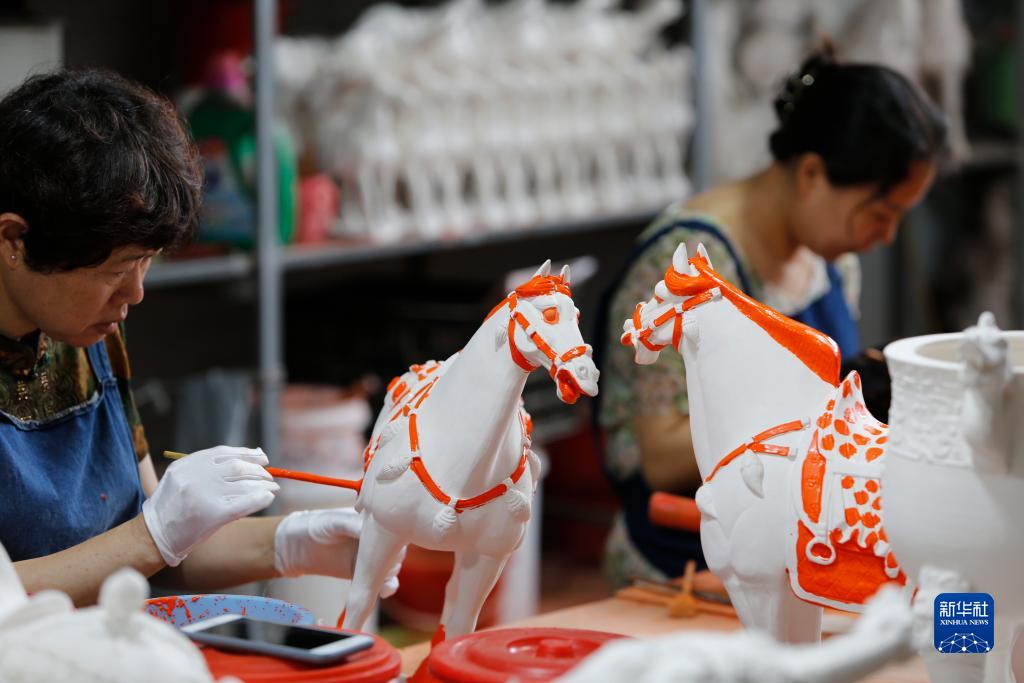 唐三彩被譽為“東方藝術瑰寶”,迄今已有1300餘年歷史。河南省洛陽市孟津區朝陽鎮南石山村以生産唐三彩而聞名,近年來,當地通過整合資源、規範管理等措施,傳承創新唐三彩燒制技藝,實現唐三彩企業信息共享、資源共享。在行業協會的引領下,將傳統製作工藝與現代元素相融合,逐步推動産業高質量發展,成為人才集中、産品豐富的唐三彩生産基地和唐三彩藝術品集散地。目前,該村擁有唐三彩生産企業60多家,年産值3.5億元,先後榮獲全國“一村一品”示範村鎮、“全國鄉村特色産業億元村”等稱號。