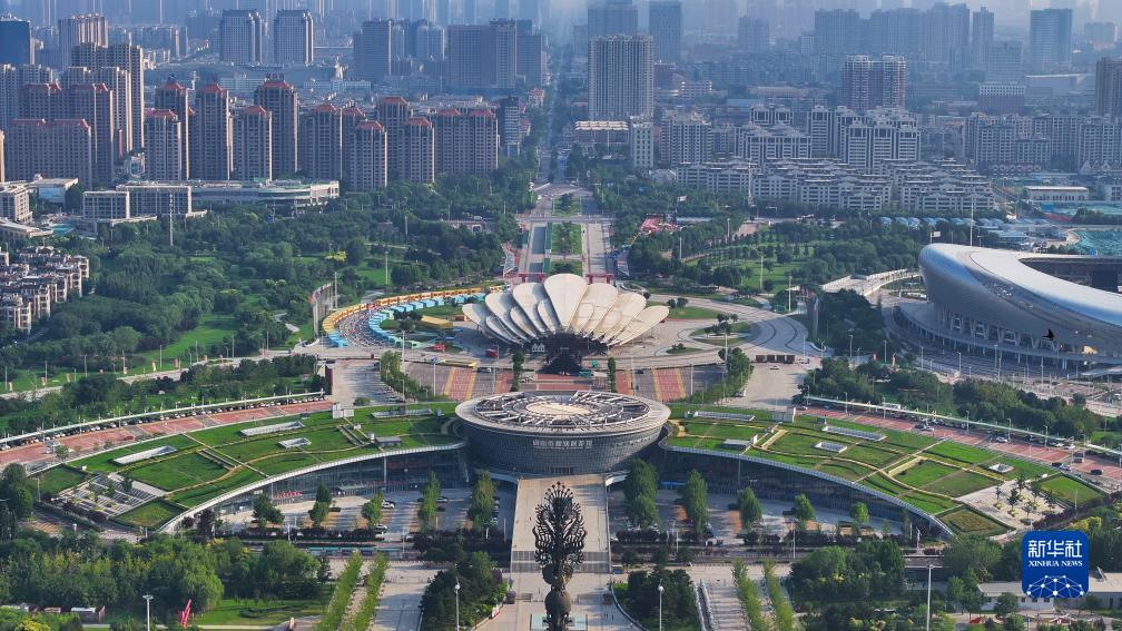 這是7月22日拍攝的河北省唐山市南湖附近城市景觀(無人機照片)。