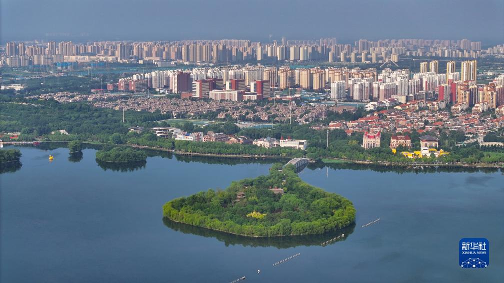 這是7月22日拍攝的河北省唐山市南湖及城市景觀(無人機照片)。