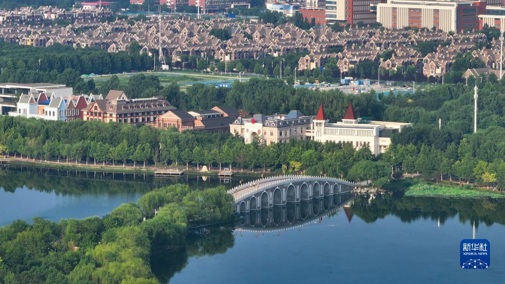 這是7月22日拍攝的河北省唐山市南湖及城市景觀(無人機照片)。