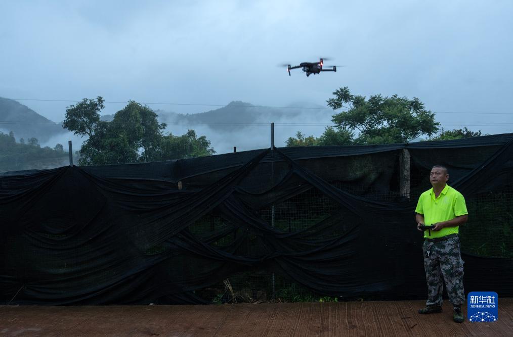 7月20日清晨,刁發興操作無人機監測亞洲象的行蹤。