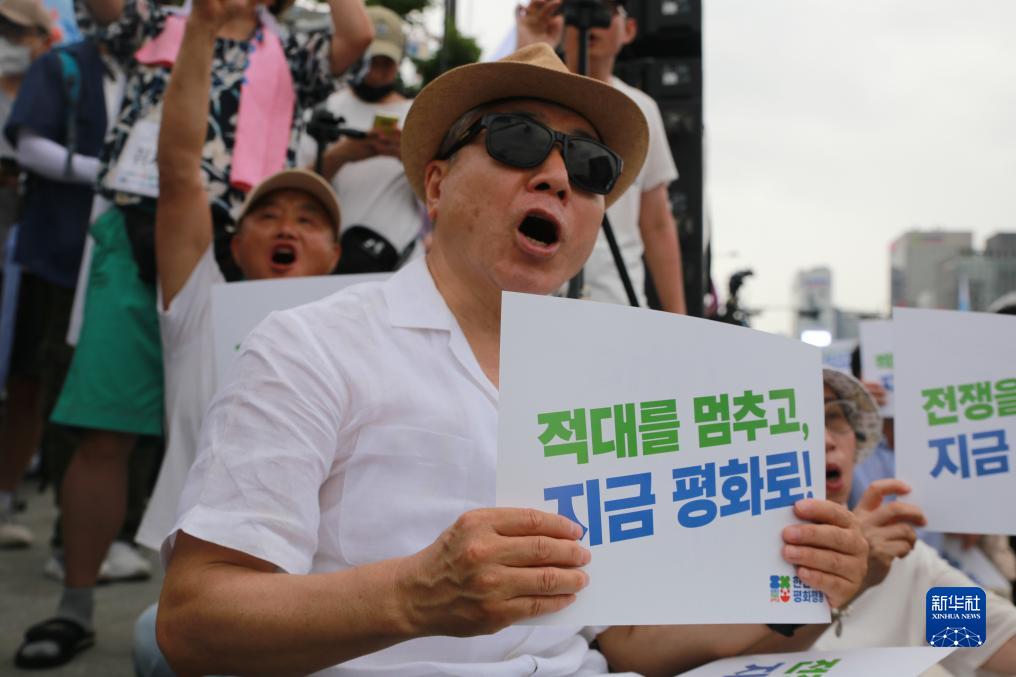 韓國民間團體“停戰70年朝鮮半島和平行動”7月22日在首爾市中心舉行反戰游行活動,反對韓美日加強軍事合作,呼籲停止製造半島軍事緊張,打造和平共存、合作共贏的亞洲。