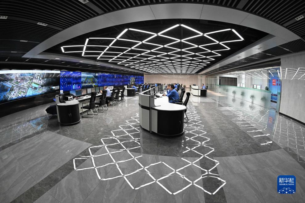 首鋼京唐鋼鐵聯合有限責任公司工作人員在生産管控中心工作(7月22日攝)。