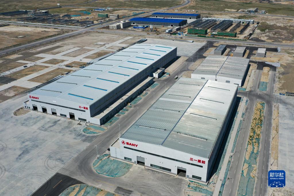 這是7月22日在新疆塔城重點開發開放試驗區先行發展區拍攝的已經投産的三一(塔城)風電設備有限公司(無人機照片)。