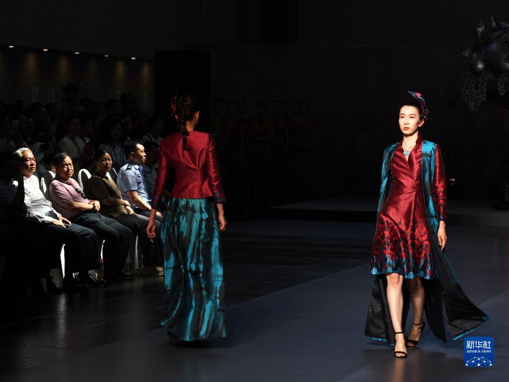 在時尚秀現場,模特展示服飾作品(7月22日攝)。