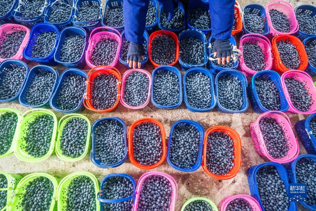 7月23日,貴州省畢節市赫章縣興發鄉中營村的村民在分裝采收的藍莓。