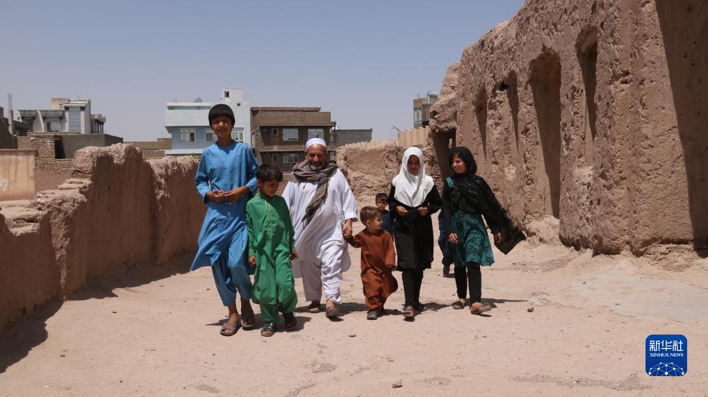 7月15日,當地村民走在阿富汗赫拉特省赫拉特市沙提爾堡村內,該村莊曾於2001年遭到美軍集束炸彈襲擊。