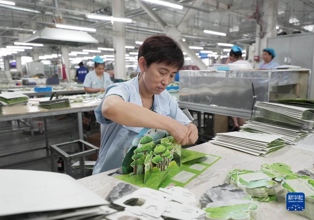7月23日,工人在河北省肅寧縣的一家圖書印刷企業的裝訂車間工作。