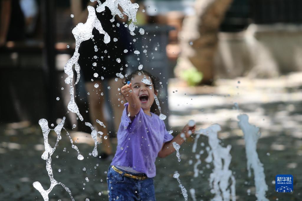 7月23日,兒童在土耳其安卡拉一處噴泉玩水。