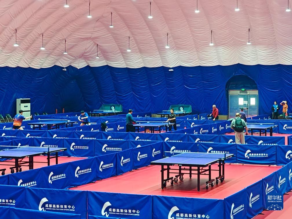 3月1日,人們在成都高新體育中心多功能館的臨時訓練氣膜館練習打乒乓球。該臨時訓練氣膜館採用輕型裝配式氣膜結構,利用氣壓來支撐,無需任何梁、柱,可得到更大的完全凈空的建築空間,具有節約能源、減少水資源消耗、降低二氧化碳排放量、延長使用壽命、降低建築物運行成本、促進可持續發展等優點。