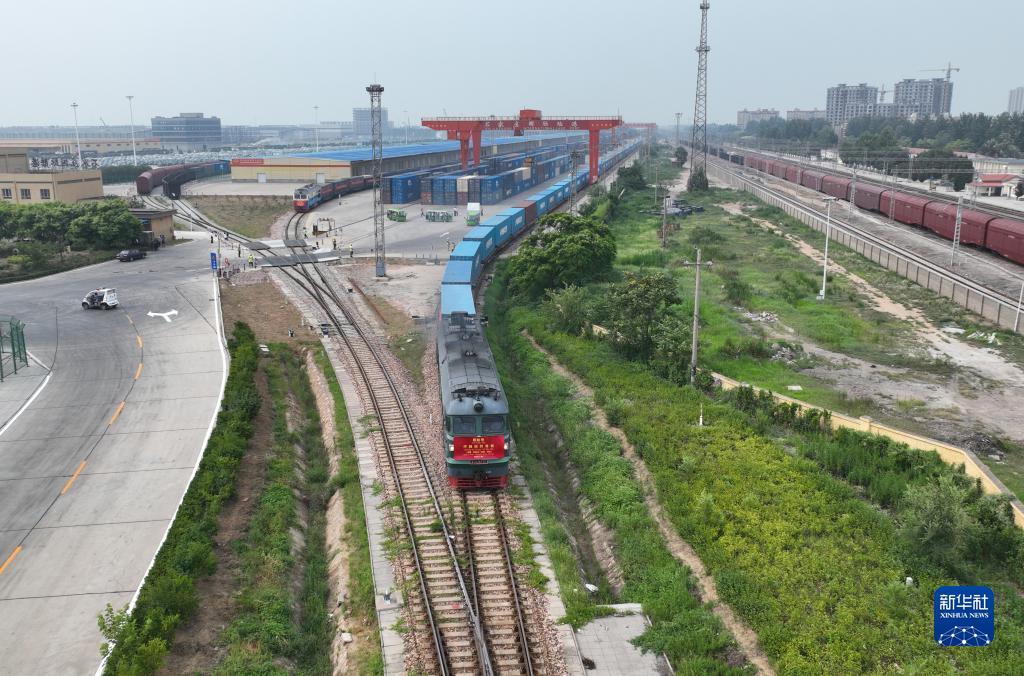 7月24日,“燕趙號”中越班列從河北省石家莊國際陸港駛出(無人機照片)。