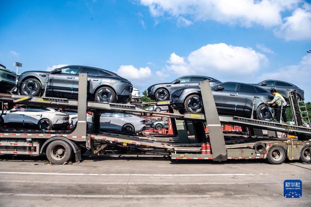7月20日,在位於重慶市江北區的長安汽車整車分撥中心,新能源汽車阿維塔裝車發運。
