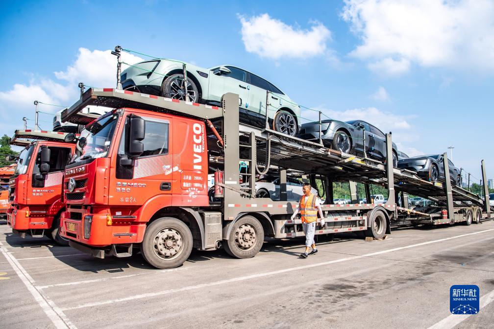 7月20日,在位於重慶市江北區的長安汽車整車分撥中心,新能源汽車阿維塔裝車發運。