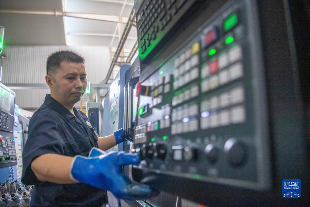 7月24日,工作人員在位於重慶市永川區的重慶聯豪科技有限公司生産車間內作業。該公司是一家專業生産汽車差速器總成及零部件的汽車零部件公司。