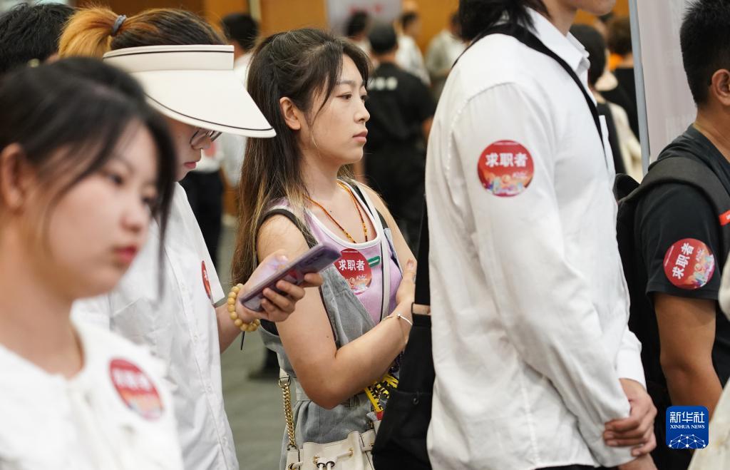 這是7月24日拍攝的招聘會上的求職者。