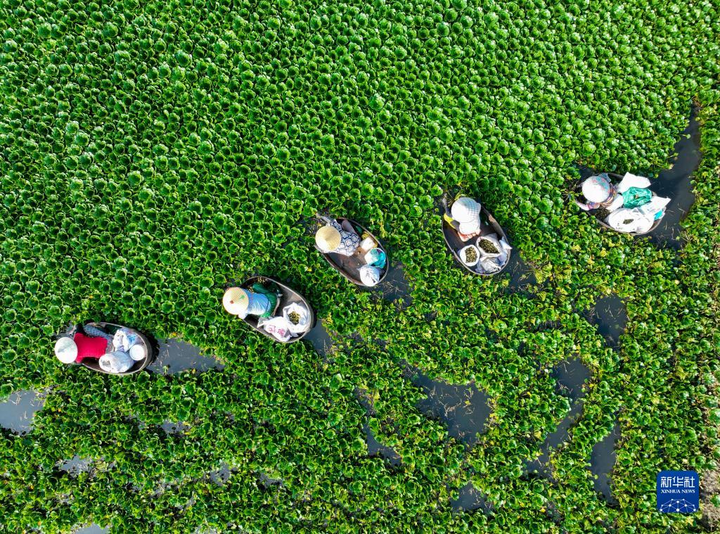 眼下,江蘇省泰州市姜堰區種植的菱角陸續進入採摘期,當地農民起早在菱塘進行採摘,確保新鮮的菱角及時供應市場。近年來,姜堰區利用裏下河水面豐富資源優勢,大力發展菱角種植,助力農民增收致富。