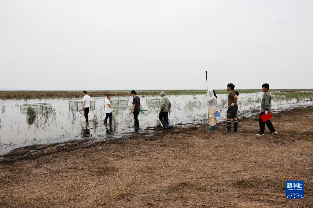 7月9日,中國科學院洞庭湖濕地生態系統觀測研究站科研人員在湖南東洞庭湖國家級自然保護區準備採樣。新華社記者 金立旺 攝