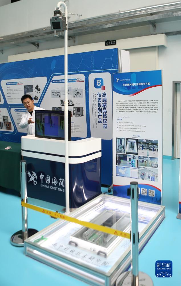 7月24日,在濟南中科核技術研究院,工作人員在講解無感通關輻射監測解決方案。新華社記者 張浩波 攝