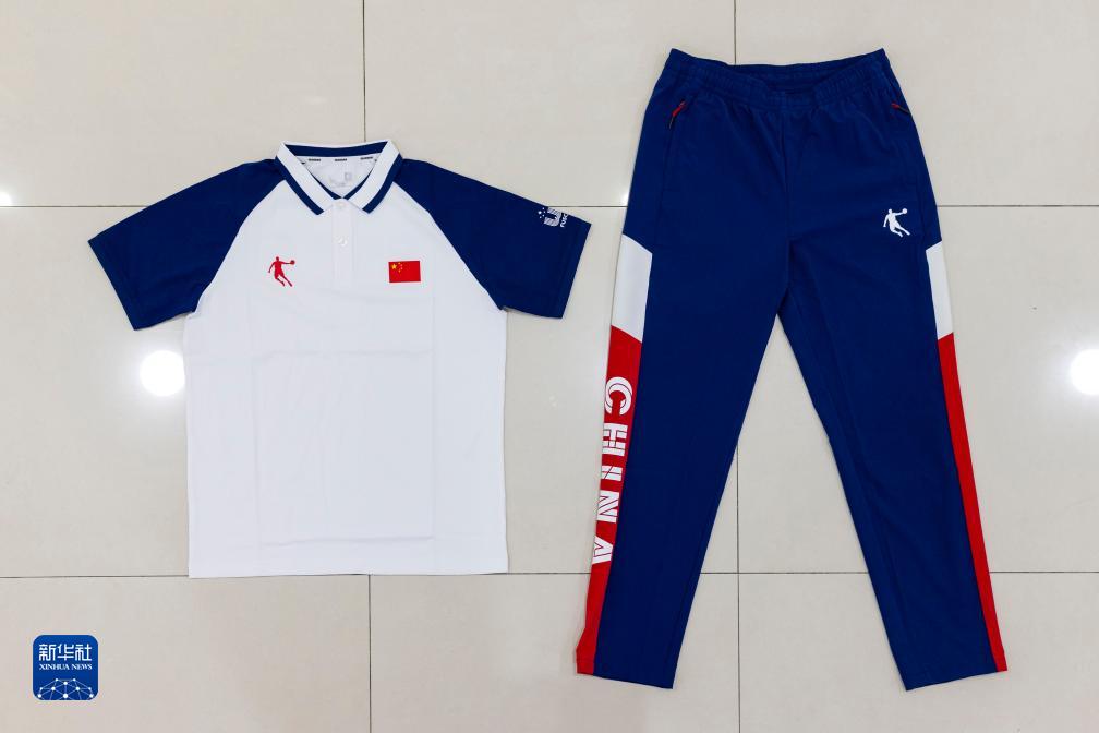 這是7月24日拍攝的第31屆世界大學生夏季運動會中國代表團成員配發裝備中的POLO短T恤衫和長褲。