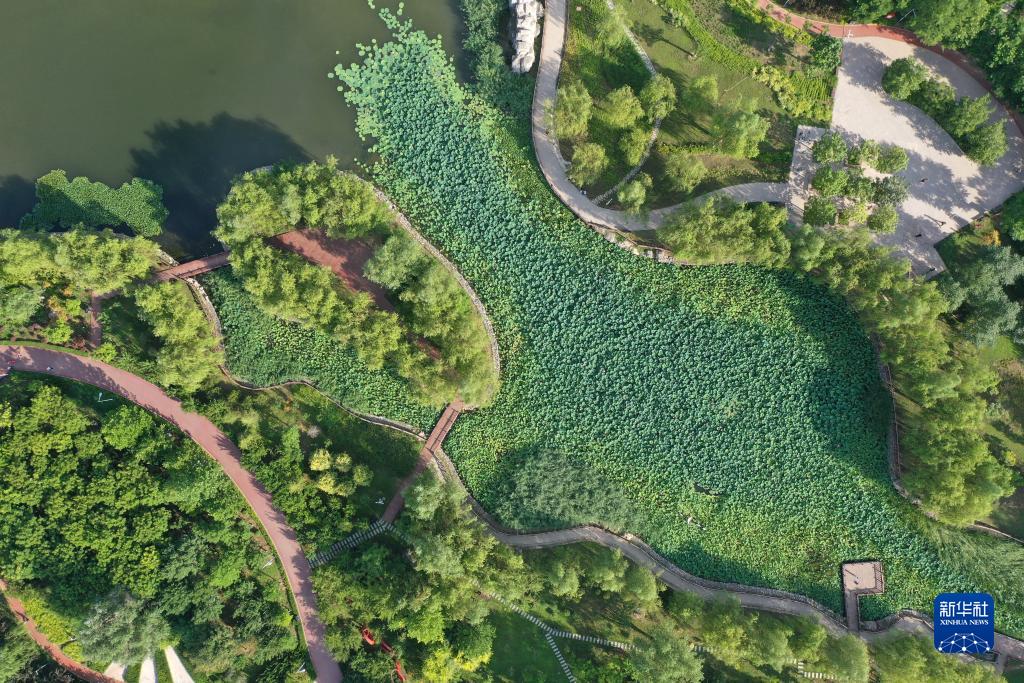 這是白溝新城一處“口袋公園”(7月25日攝,無人機照片)。