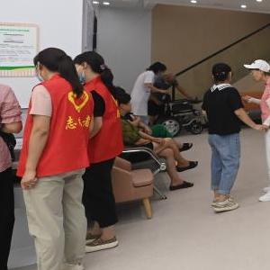 7月25日,居民(右)在諸暨市浣東街道東盛社區衞生服務站的智慧藥房內自助測量體重。
