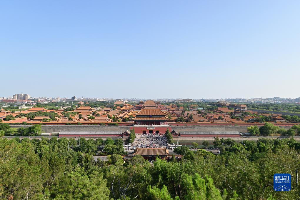 從景山上拍攝的故宮(7月4日攝)。始建於1406年的故宮是世界上現存規模最大、最完整的古代木構宮殿建築群,位於北京中軸線的中心。1987年聯合國教科文組織將其列入世界文化遺産名錄。