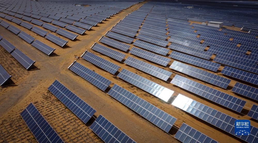 7月20日拍攝的寧夏中衛市沙漠光伏産業園光伏電站(無人機照片)。