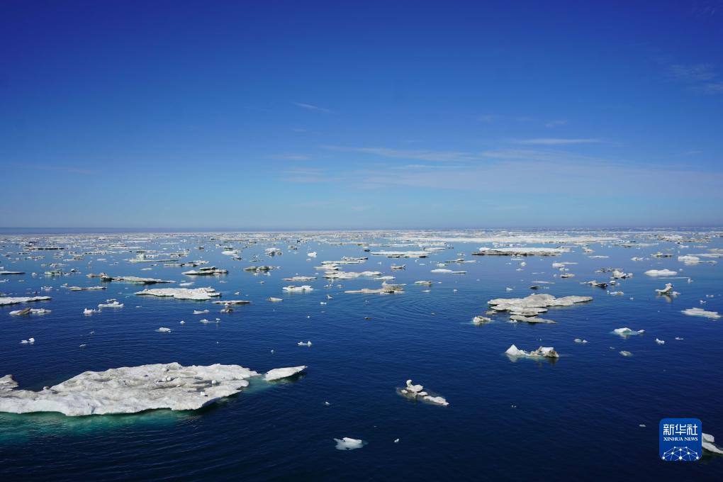 這是7月25日從“雪龍2”號極地科考破冰船拍攝的北極圈內的浮冰。