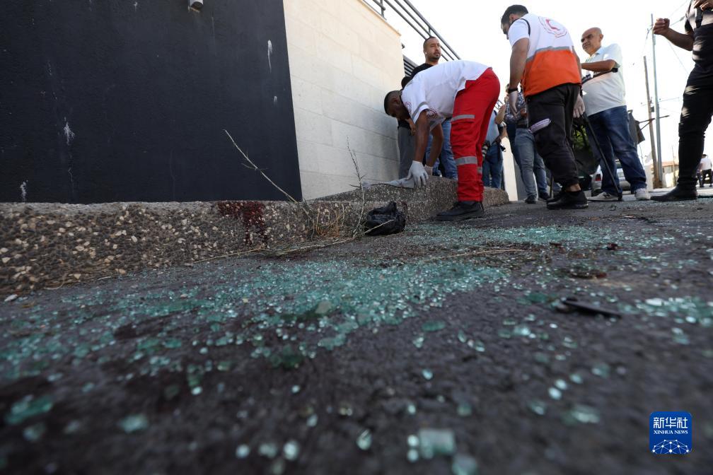 7月25日,巴勒斯坦醫護人員在約旦河西岸城市納布盧斯事發現場工作。